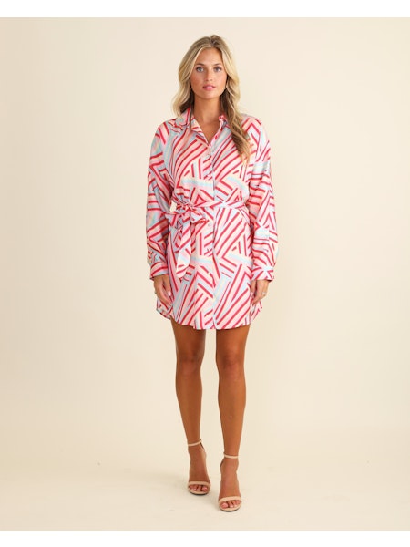 Marina Stripe & Houndstooth Long Sleeve Short Shirt