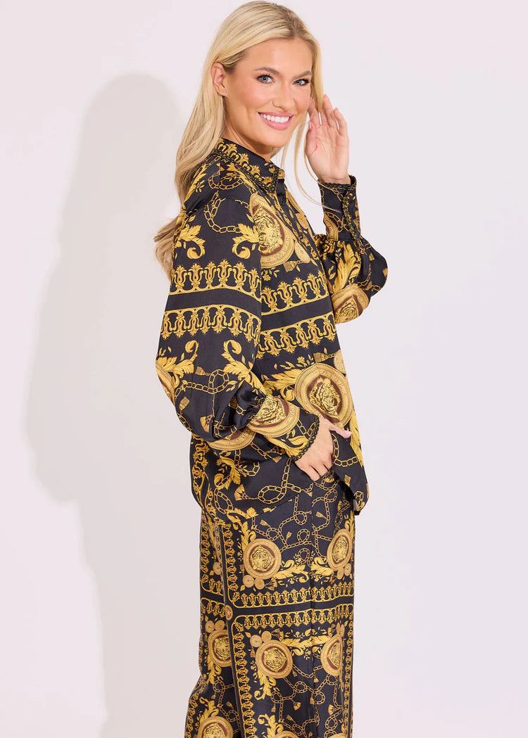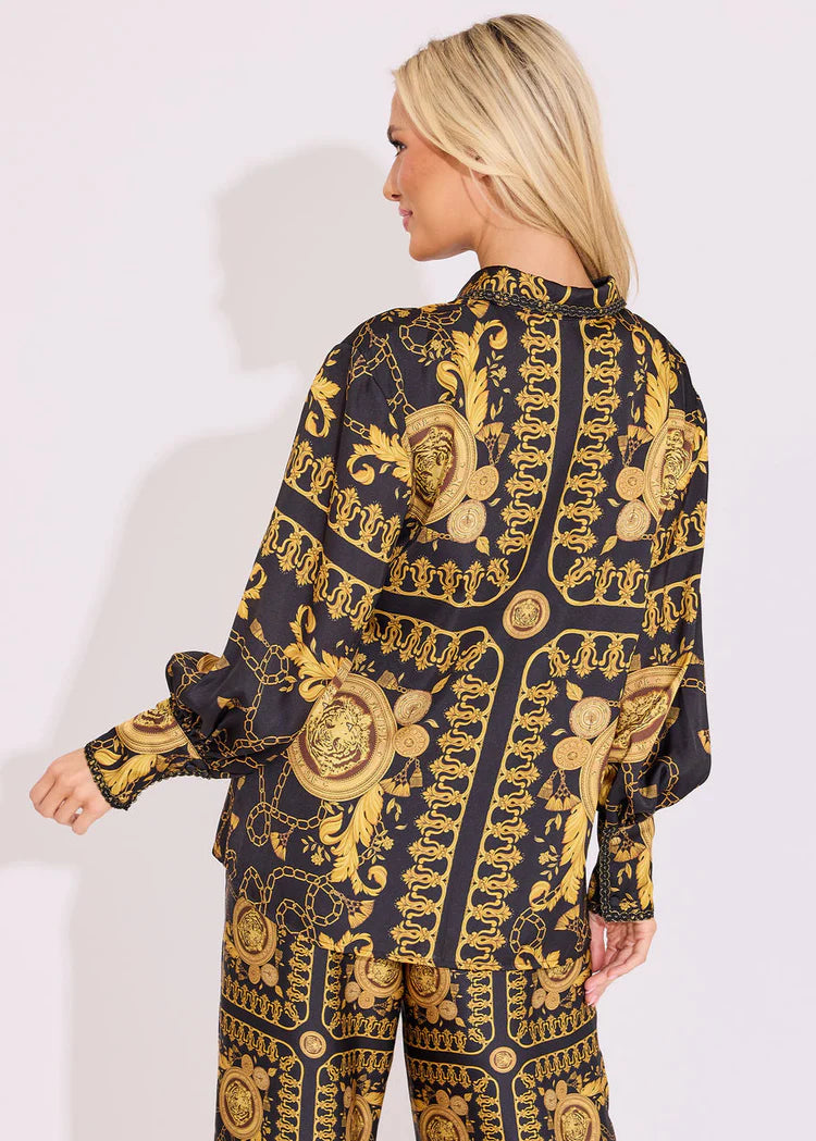 Looking for an elevated and stylish button up? Then the Sadie top is your perfect fit! The Sadie features a pocket on the left chest and a scalloped trim detail on the sleeve, pocket, and collar for an extra feminine touch.