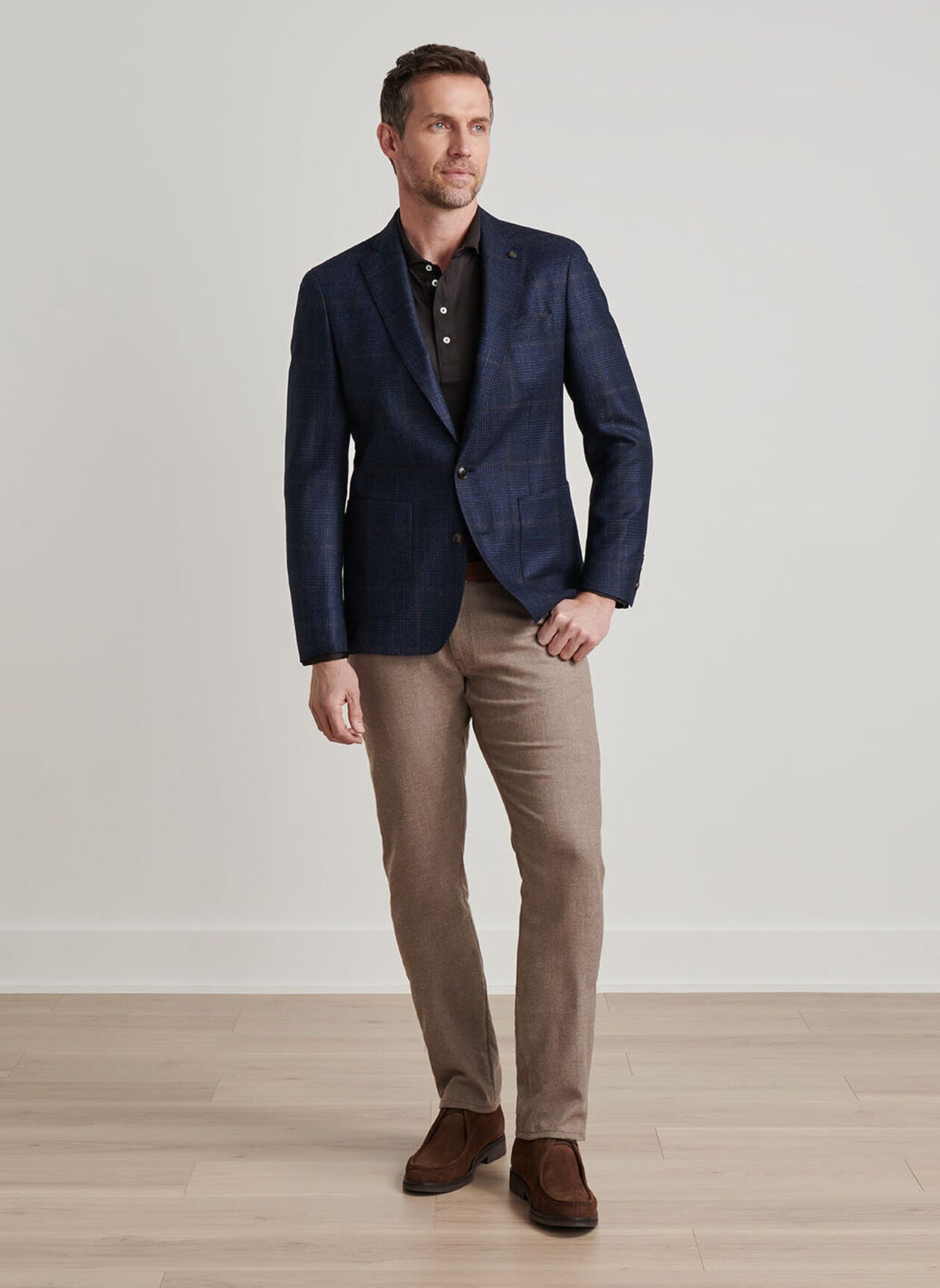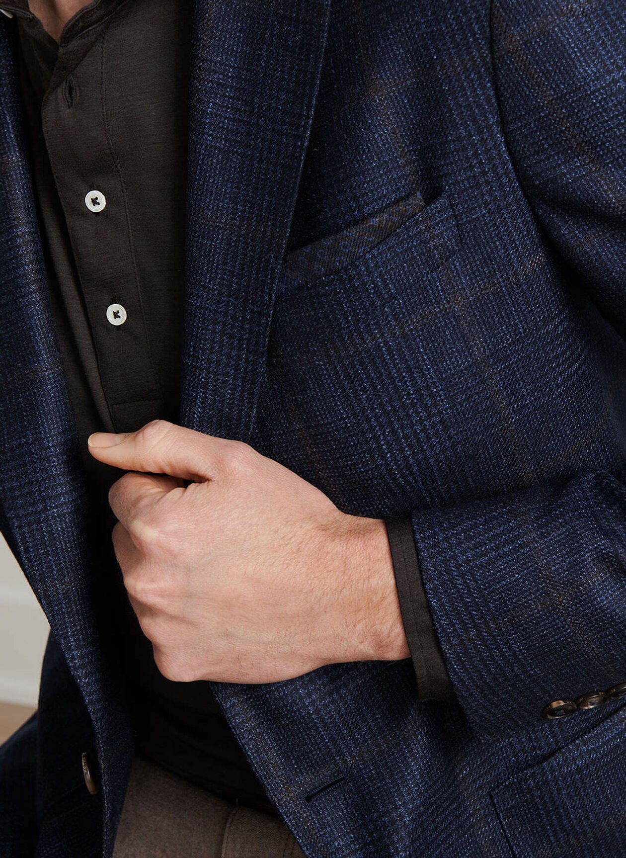 Crafted in Europe from fine Italian cloth, the Benning is a casually refined design and a versatile wardrobe essential. It's constructed with natural shoulders, notched lapels, a Barchetta chest pocket, two-button front, patch pockets and side vents. Silk fabric lines the sleeves and the half canopy that covers the shoulders for comfortable wear and easy layering.