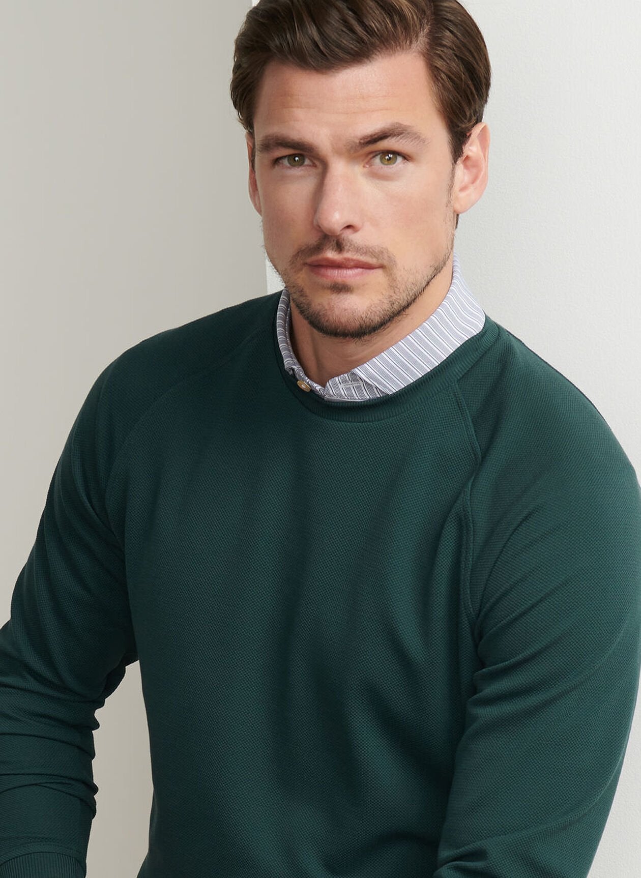 The Cradle crewneck is back this season in an all-new textured piqué knit for a more classic, sweater-like look and feel. A must-have for on or off the golf course, it offers four-way stretch, wicking and easy-care for optimal comfort. Finished with raglan sleeves, banded cuffs and a banded hem.