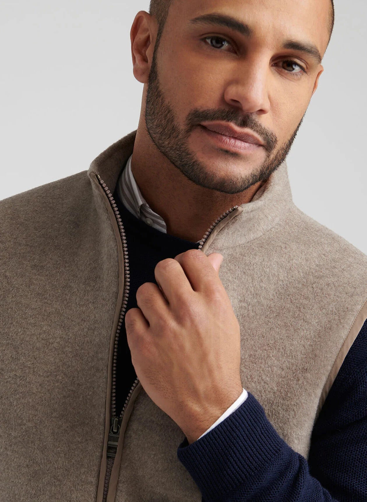 Formerly known as Crown Flex Fleece, this versatile layer highlights the luxurious feel of our exclusive stretch knit Merino wool. Lightly lined and padded this season, it’s the perfect multi-purpose piece to be worn casually or dressed up over sport shirts and sweaters. The design has been softened slightly with a scalloped hem, angled side pockets and a new zipper.