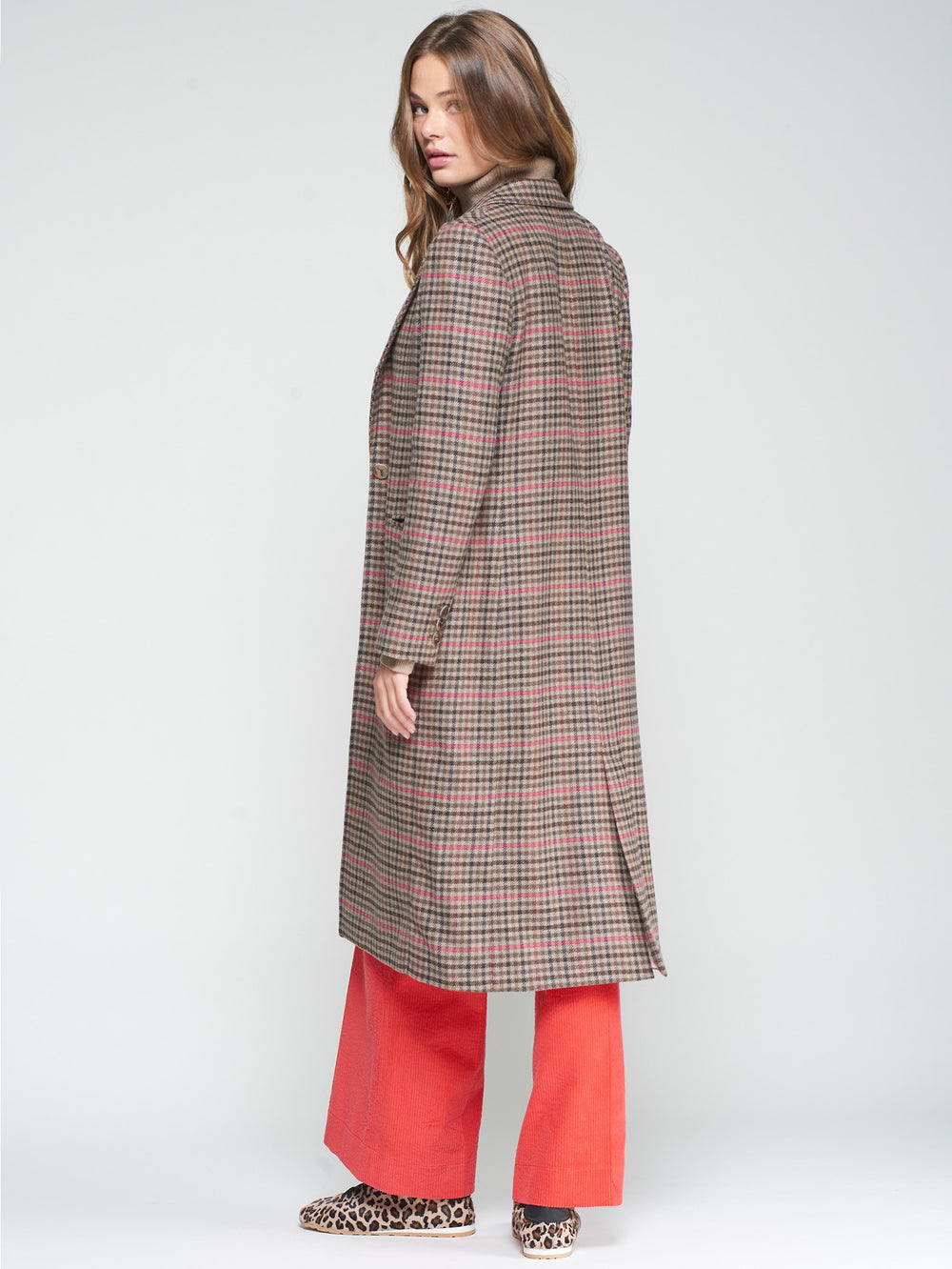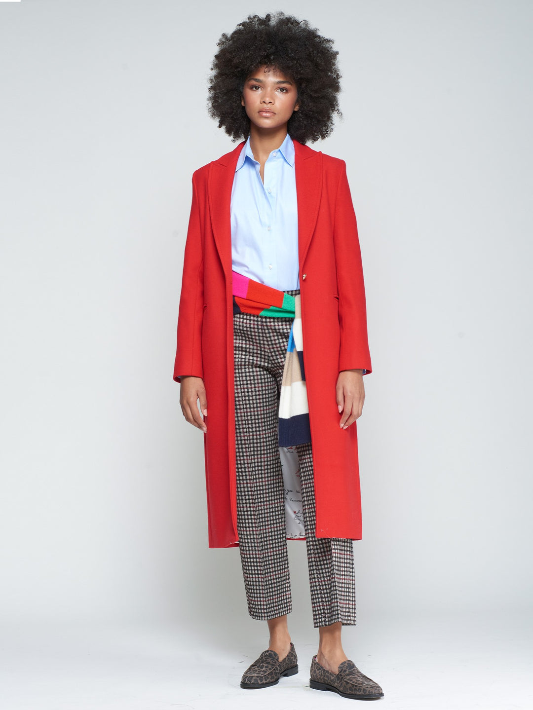 PINK AND ORANGE DIAGONAL STRIPED WOOL COAT