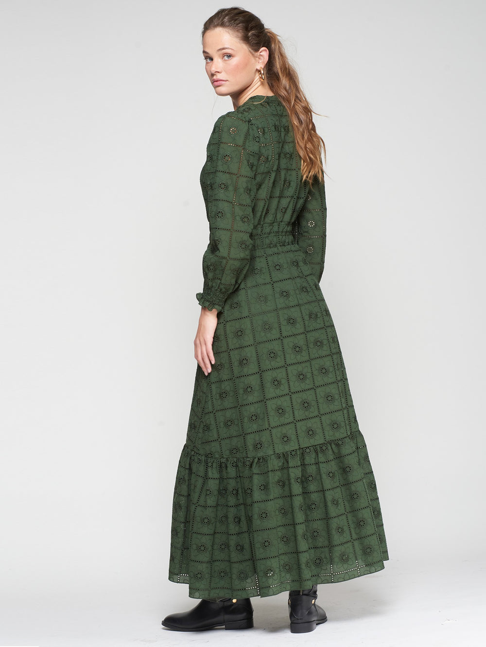GREEN DRESS WITH FLORAL EMBROIDERY