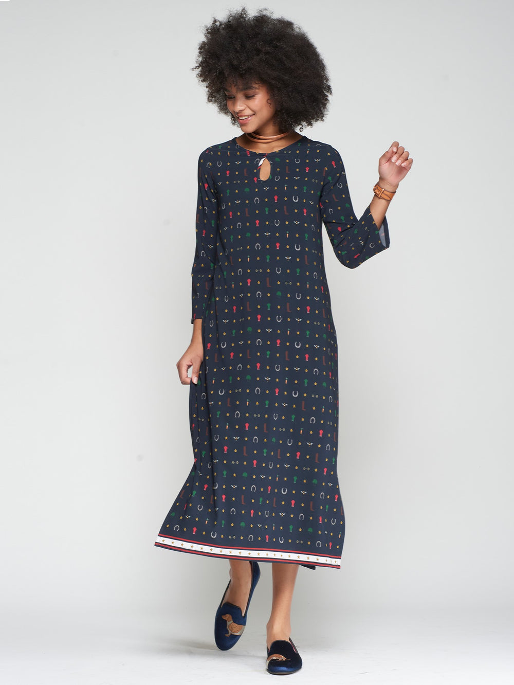 NAVY DRESS-EQUESTRIAN PRINT