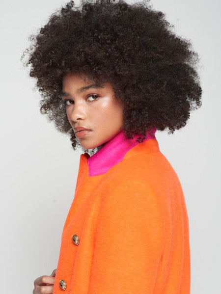 ORANGE WOOL JACKET WITH CONTRAST COLLAR