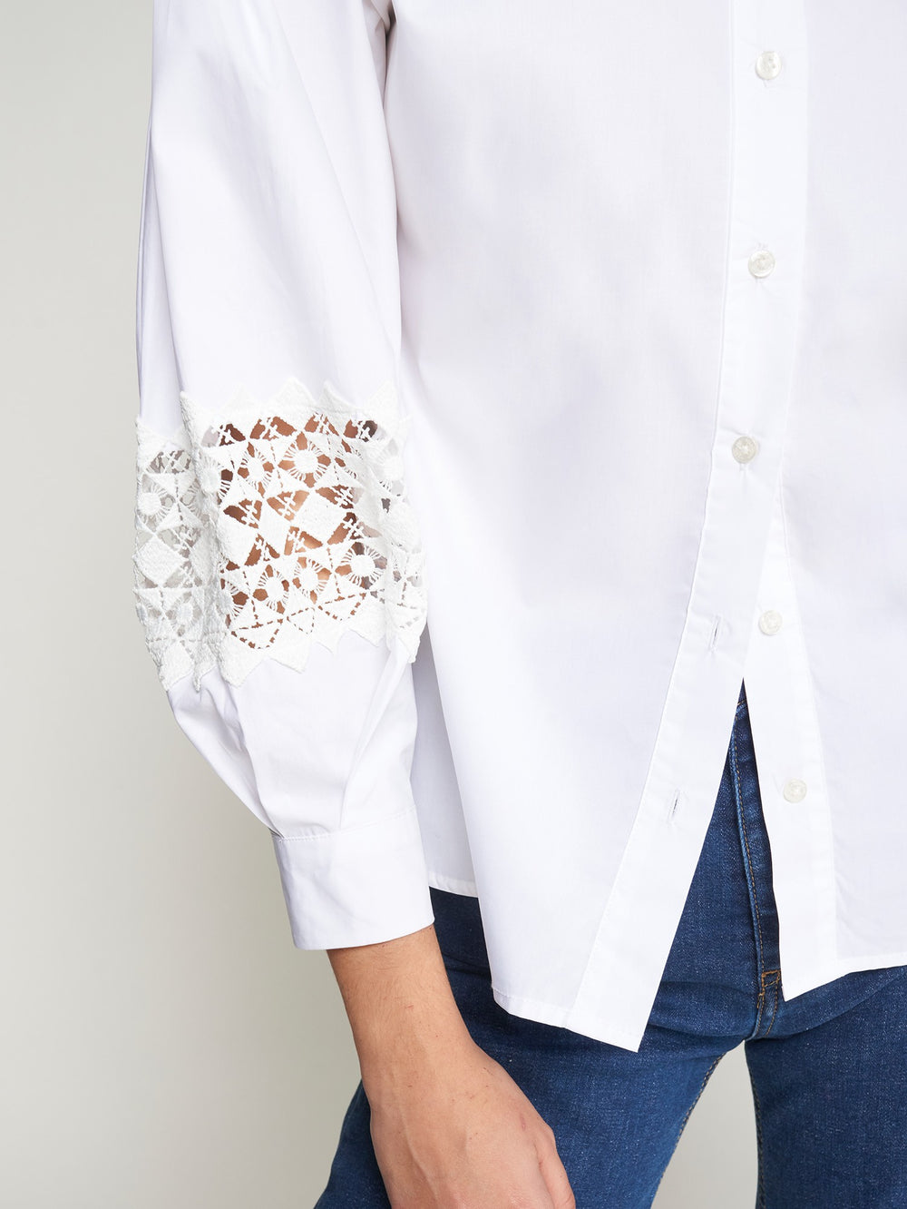 WHITE POPLIN SHIRT WITH LACE SLEEVES - 32955