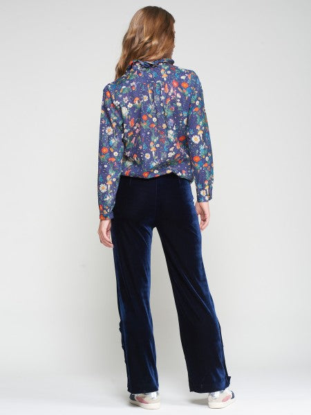 NAVY VELVET TROUSER W/ SIDE BUTTONS